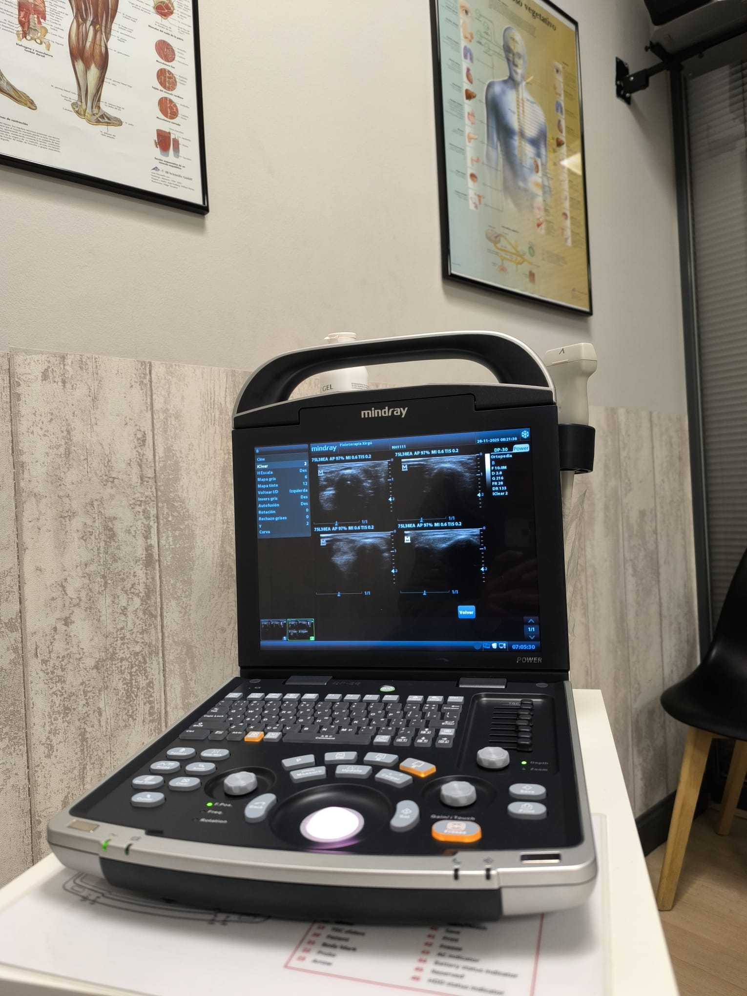 - Permite visualizar en tiempo real las estructuras internas, facilitando el diagnóstico preciso de lesiones musculares, tendinosas, ligamentarias y articulares.
